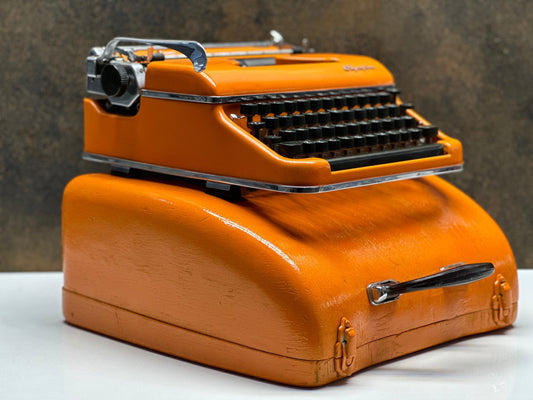 Olympia SM3 Vintage Manual Typewriter Orange + Bag – Retro Portable Working Typewriter Gift | Unique Valentine’s Day Gift for Writers