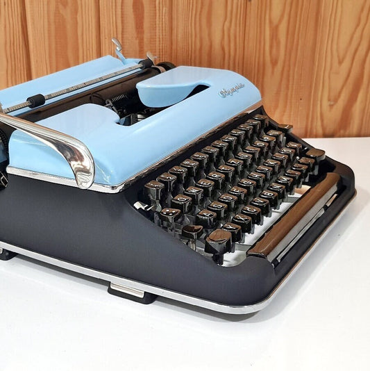 Olympia SM3 Black & Ice Blue Typewriter, Fully Serviced, Like New Condition, Premium Vintage Gift for Writers,Unique Decor