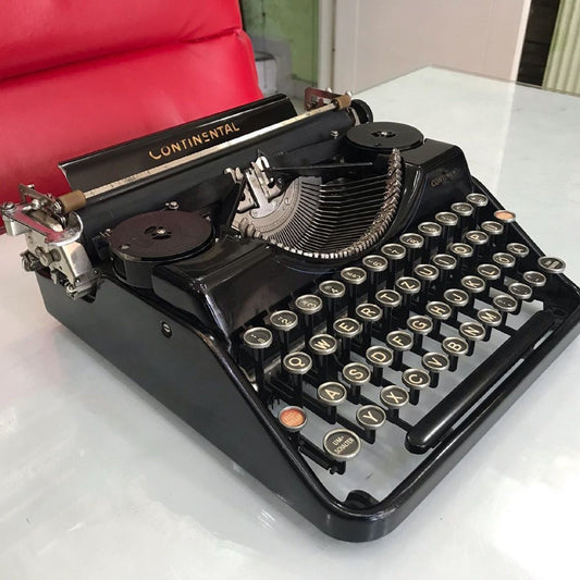 Continental Typewriter | Vintage Glass Keyboard, Fully Operational | 1940 Model Black Elegance for an Inspired Writing Experience
