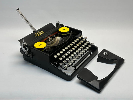 Erika Modell S Typewriter - Vintage Black Beauty with QWERTZ Keyboard and Black Wood Bag,