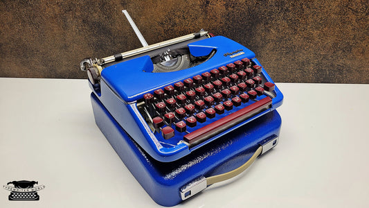 German-Made Olympia Splendid 33/66 Blue Typewriter with Mechanical Burgundy Keyboard and Case | Fully Refurbished Rare Writing Machine