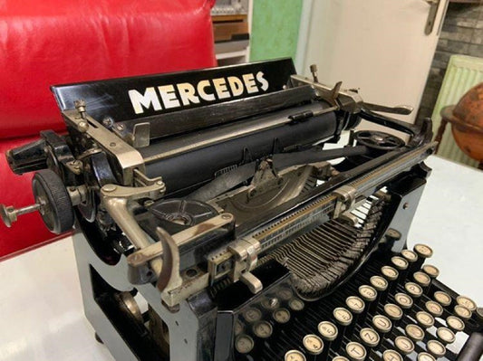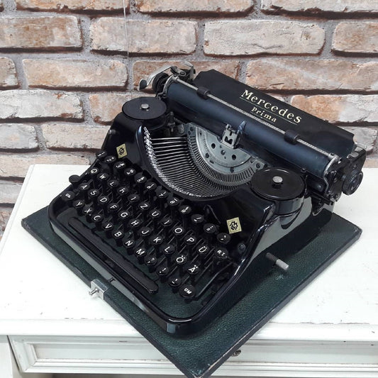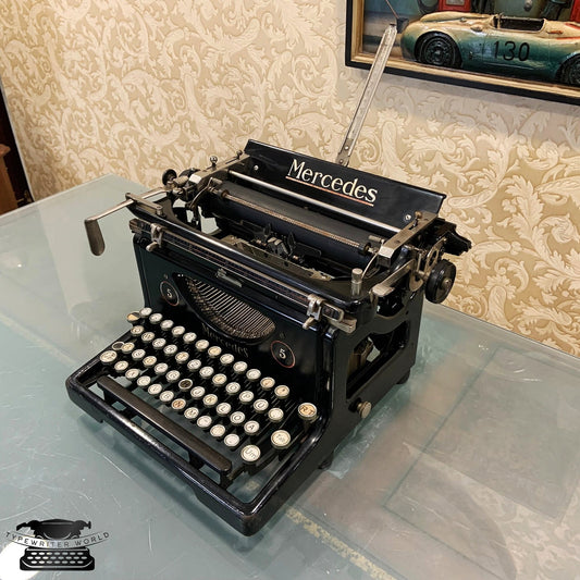 Mercedes Typewriter 1925 - Like New, Fully Operational, Premium Product, Black with Glass Key