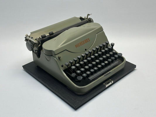 Mercedes Typewriter - Slim Case Model from 1950 in Glossy Green with QWERTZ Keyboard