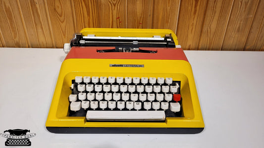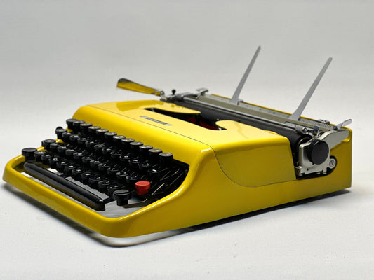 Olivetti Lettera 32 Typewriter - Vintage 1960 Model in Yellow with QWERTY Keyboard and Leather Bag