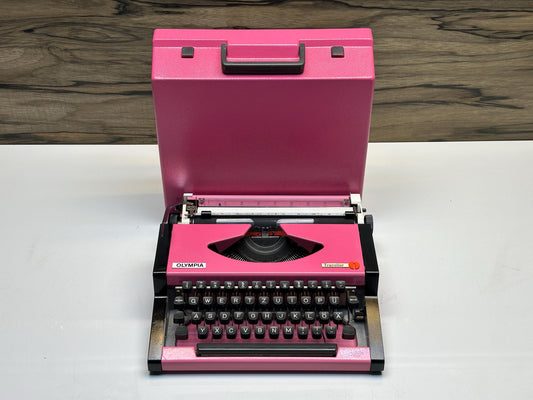 Pink Olympia SM5 Typewriter: Vintage Style, White Keys, Pink Case, QWERTZ Keyboard - Retro Charm