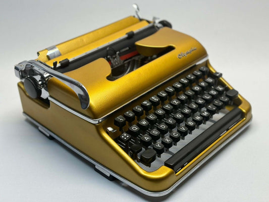 Premium Gold Olympia SM3/SM4 Typewriter - Vintage 1955 Model in Luxurious Gold Finish with QWERTZ Layout