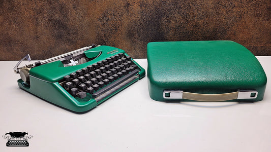 Portable Olympia Splendid 33/66 Vintage Green Typewriter with Black Keyboard - Ideal for Traveling Writers and Students