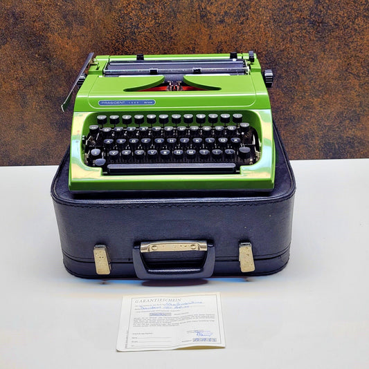 Prasident Green Manual Typewriter with Leather Bag | Vintage Working Typewriter Gift for Writers & Collectors | Retro Office Decor