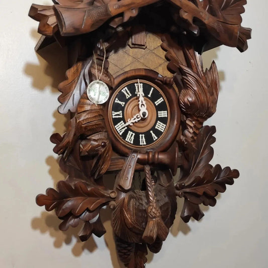 Rare 1930s/40s German Kaiser Giant Hunter-Themed Mechanical Cuckoo Clock - Hand-Carved and Painted, Perfect Condition
