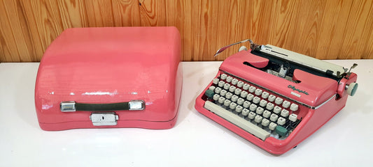 Unique Valentines Day Gift, Pink Olympia Monica Typewriter with Matching Pink Bag, Working Vintage Typewriter, Retro Writing Gift,