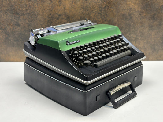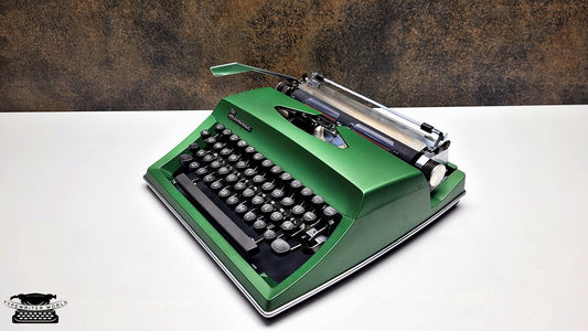Vintage Elegance: Olympia De Luxe Typewriter in Green with Stylish Carry Bag - Fully Functional!