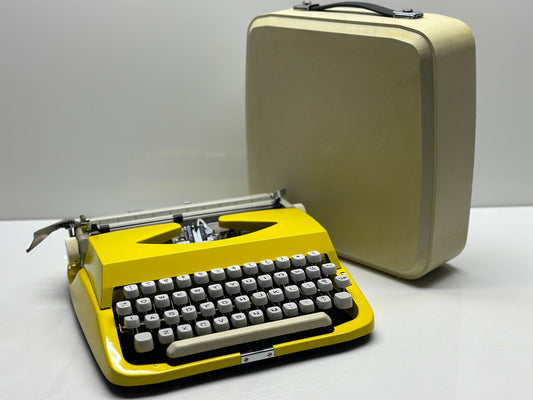 Yellow Olympia SM3 Typewriter with Matching Yellow Bag - QWERTY Keyboard for Timeless Writing