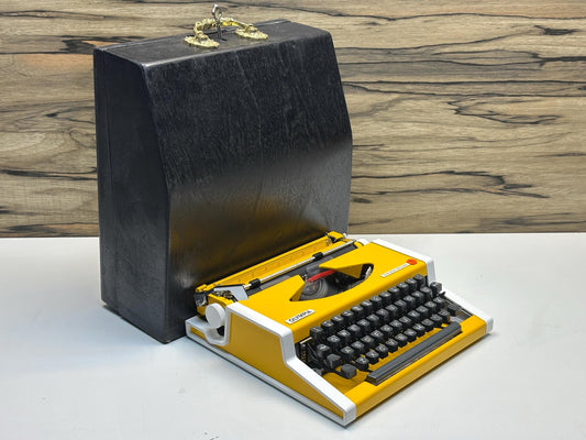 Yellow Olympia Traveller Bag with Black Keyboard | Wooden or Yellow Plastic Case Option | Retro Manual Portable Typewriter