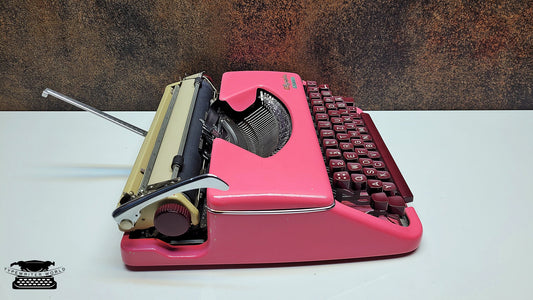 Antique Olympia Splendid 33/66 Pink Typewriter with Matching Case and Burgundy Keys | Rare Mechanical Keyboard for Writers and Collectors