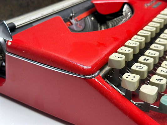 Antique Olympia Splendid 33/66 Red Typewriter with Matching Case and White Keys | Rare Mechanical Keyboard for Writers and Collectors - Gift