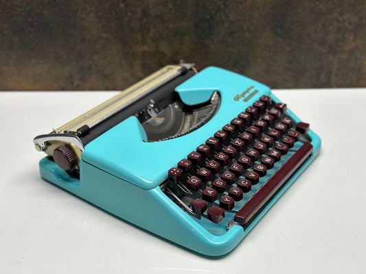 Antique Olympia Splendid 33/66 Turquoise Typewriter with Matching Case and Burgundy Keys | Rare Mechanical Keyboard for Writers and Collecto