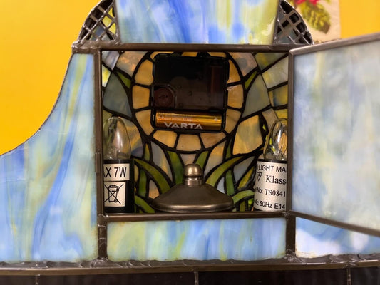 Antique Tiffany Clock and Night Lamp | Stained Glass Handmade | Quartz Battery Operated | 19x33 cm,