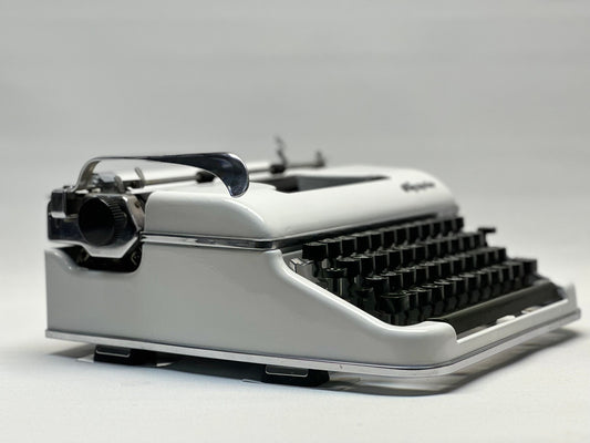 Antique Olympia SM3 Typewriter (1955) | Professionally Painted White| Fully Serviced & Working | Vintage Manual Typewriter with Wooden Crate