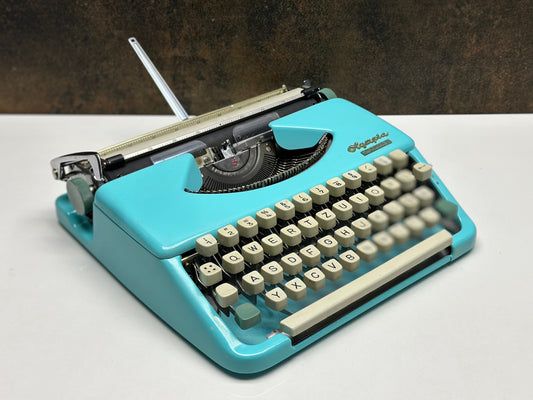 Antique Olympia Splendid 33/66 Turquoise Manual Typewriter | Rare Writing Machine with White Keys & Case | Gift for Writers