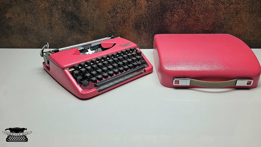 Best Gift - Portable Olympia Splendid 33/66 Pink Typewriter with Black Keys - Vintage Manual for Writers & Students - Travel Ready