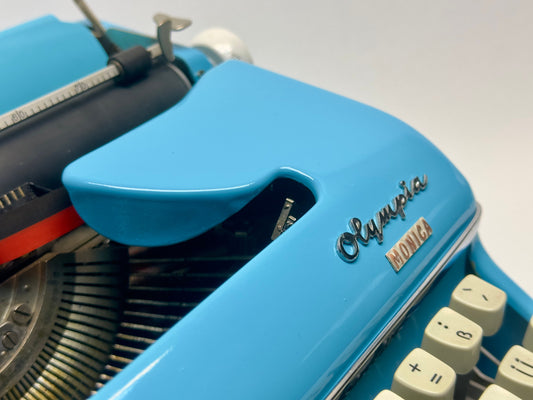 Blue Olympia Monica Typewriter - 1960 Model, Excellent Condition - White Keyboard, with or without Bag