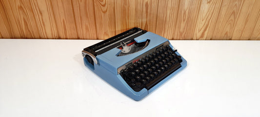 Best Gift - Olympia Splendid 33/66 Blue Manual Typewriter with Black Keys - Vintage Portable for Writers & Collectors - Gift Ready
