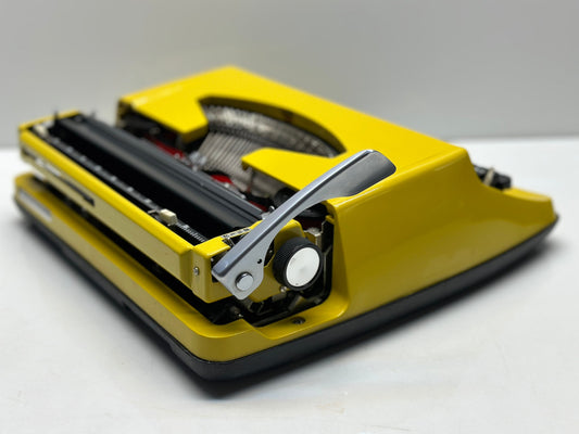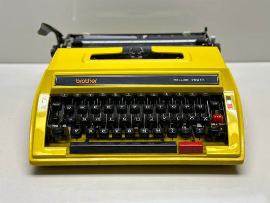 Brother Deluxe 760TR Typewriter - QWERTZ Keyboard, Yellow Aesthetics, and Versatility with Matching Bag - Antique Typewiter - Brother Type