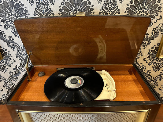 Antique Philips Radio and Record Player - Walnut Finish, Taba Patterns, Refurbished