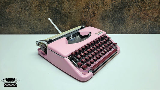 Restored Olympia Splendid 33/66 Ice Pink Typewriter with Mechanical Burgundy Keyboard and Case | Vintage QWERTY Typewriter for Writers
