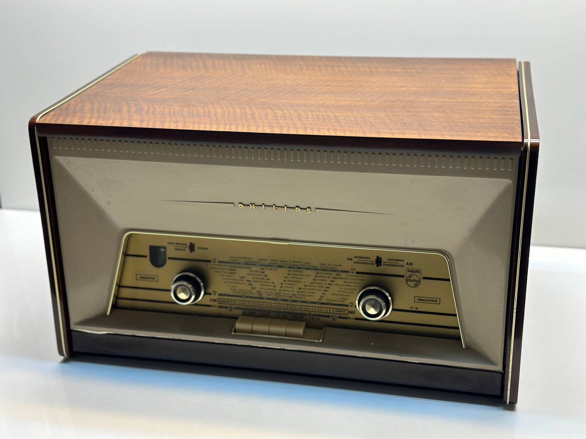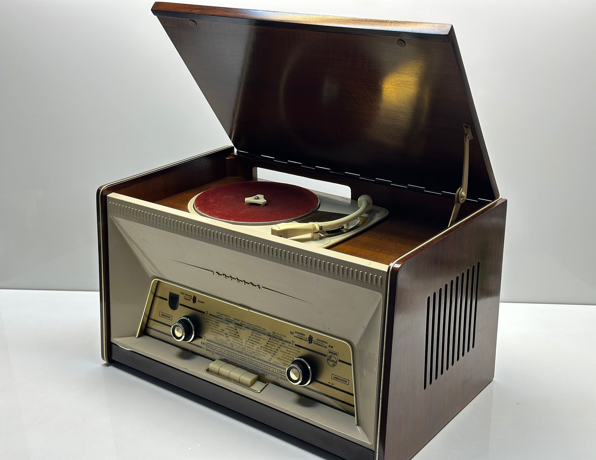 Antique Philips Radio and Record Player - Walnut Finish, Taba Patterns, Refurbished